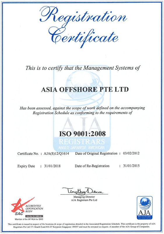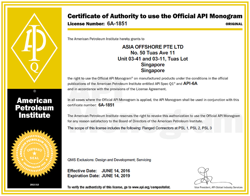 Asia Offshore Pte Ltd, A fully licensed ISO 9001:2008 & API manufacturing facility. Located in Singapore, we are dedicated to provide quality API Certified Oilfield Equipment & Engineering Services to the Marine & Petrochemical Industry.